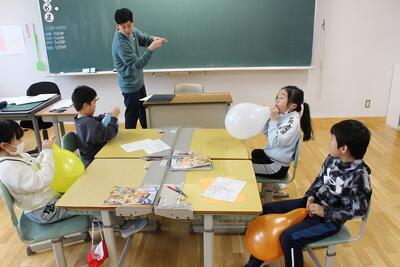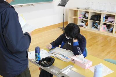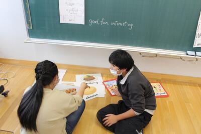5年生は、教科書の問題(ヒアリング)に取り組んでいました。
