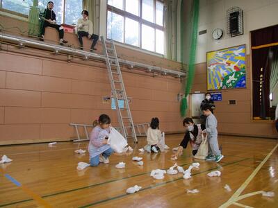 最後に恒例のもちまき。大量のおもちのシャワー!