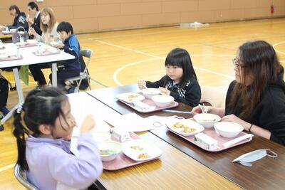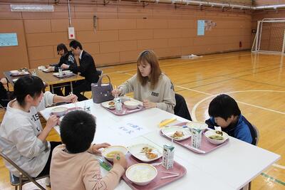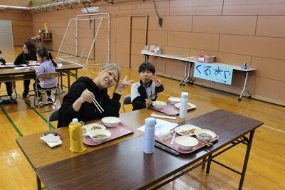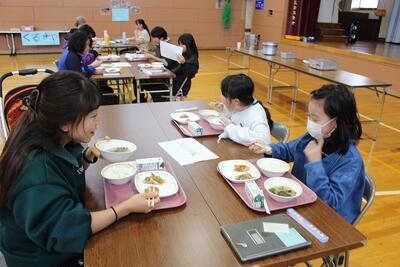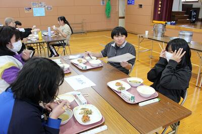授産所で作った山菜が使われているのでしょうか?午後からの総合発表会の内容とも関わる給食でした。
