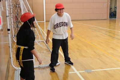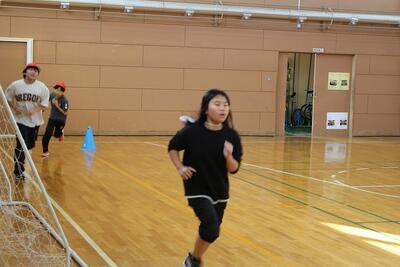 まずは、腰に付けたタグをとられないように周りを見て動く練習をしていました。