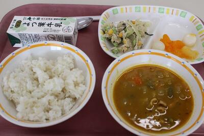 【2月24日(火)】今日の給食 投稿: 風烈布小学校 (17:06) 【今日の給食】 今日のメニューは、ごはん、スープカレー、枝豆サラダ、フルーツ白玉。 新メニュー、スープカレー。ほろほろの肉や野菜がおいしかったです。 食後には、口の中がさっぱりするフルーツ白玉もあり、満足度の高い給食メニューでした。 Tweet -