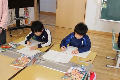 4年生は漢字の学習。漢字辞典で調べながら取り組んでいました。