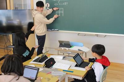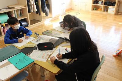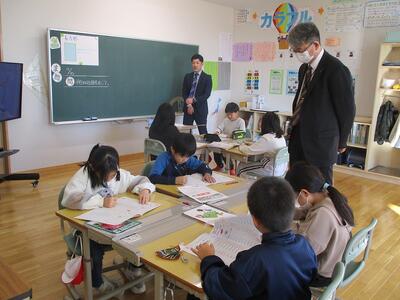 教職員は、説明しすぎないよう注意。児童が困ったときにそっと背中を押せる一言(ヒントや資料)を伝えています。