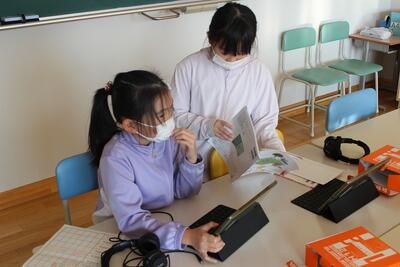 自分の考えをiPadに撮影して、交流に生かしていました。